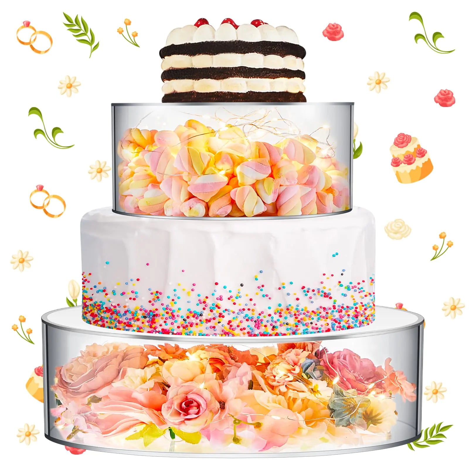 Sunnyray 2 Pcs Acrylic Cake Stands for Dessert Table Clear Fillable Cake Riser Cupcake Cake Tier with LED Strings for Birthday Wedding Holiday Party Display(8 12)